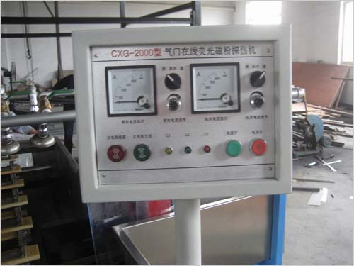 CXG-2000型氣門在線熒光磁粉探傷機(jī)系機(jī)電組合式半自動(dòng)熒光磁粉探傷設(shè)備,由電源控制系統(tǒng)、磁化系統(tǒng)、磁懸液噴灑系統(tǒng)、熒光系統(tǒng)、退磁系統(tǒng)等幾大部分組成。適用于以濕式磁粉法檢測(cè)由鐵磁性材料制成的圓銷的表面及近表面因鍛造、加工、疲勞等各種原因引起的裂紋和各種細(xì)微缺陷。