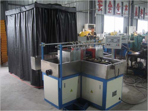 探傷節(jié)拍:約6秒/件(可2件工件同時(shí)磁化,上下料及觀察時(shí)間除外,探傷時(shí)間和工藝過程可根據(jù)需方實(shí)際需要,程序可調(diào)整)電源:三相四線 380V±5% 50Hz 80A
