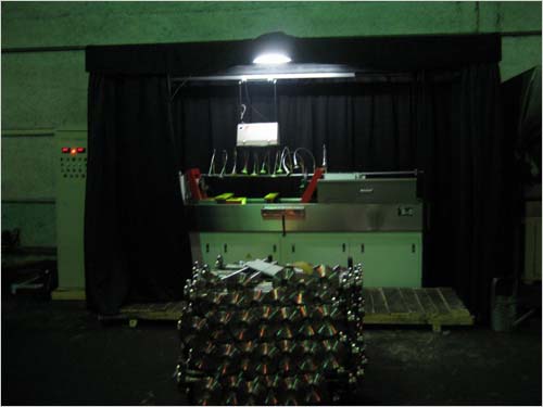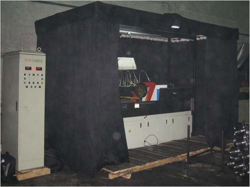 本設備采用手動、自動兩種運行方式,由可編程控制器(OMRON PLC)集中控制。手動時,可進行每個功能的單步獨立操作;自動時,設備自動執(zhí)行PLC內(nèi)部程序,工件上料到位后,按啟動按鈕,可實現(xiàn)工件夾緊——轉(zhuǎn)動——噴淋——磁化——轉(zhuǎn)動觀察等一系列動作的半自動化。手動退磁后松開工件。周向磁化采用直接通電,縱向磁化采用兩組異形結構的線圈,具有良好的磁化效果。交流磁化均帶斷電相位控制,具有較好的剩磁穩(wěn)定度,既適用于連續(xù)法探傷檢查,又適用于剩磁法探傷檢查。復合磁化在工件上形成旋轉(zhuǎn)磁場,一次性顯示磁跡,具有較高的工作效率。
