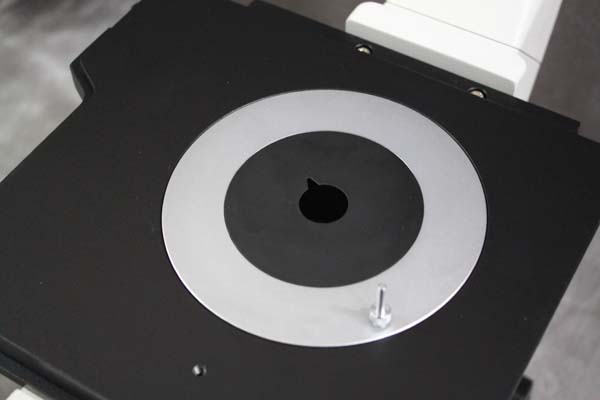 圓形可旋轉(zhuǎn)載物臺板尺寸:最大外徑Ф130mm,最小通光口徑小于Ф12mm. |