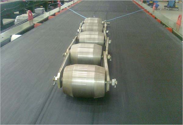 鏈碼模擬皮帶上每種物料的負(fù)荷置于皮帶上,兩頭用軟繩呈“八”字形牽拉以防走偏或后者同皮帶一起滑行,其長度應(yīng)能覆蓋電子皮帶秤的稱重托輥以及前后二組托輥,記錄皮帶一圈的長度和運行的圈數(shù),作為鏈碼的基準(zhǔn)值,經(jīng)稱重顯示器累積量為基準(zhǔn)值比較,就能確定電子皮帶秤的實際誤差,確定計量精度是否合格。