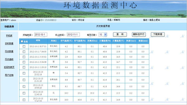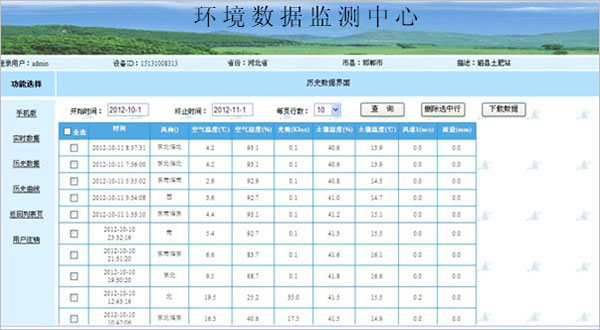 歷史數(shù)據(jù):根據(jù)開始時間和結(jié)束時間,查詢時間段內(nèi)的監(jiān)測數(shù)據(jù)。并且可以刪除數(shù)據(jù)和導(dǎo)出數(shù)據(jù)到本地。