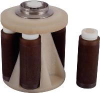 產(chǎn)品介紹 新一代“多聯(lián)體消解罐”就是在一個(gè)外罐中同時(shí)裝入3-12個(gè)盛放樣品的內(nèi)罐而主機(jī)的壓力控制系統(tǒng)控制聯(lián)體罐的合力,即無(wú)論哪個(gè)內(nèi)罐的壓力超過(guò)設(shè)定值都可以得到控制。而傳統(tǒng)的多罐消解模式中,只控制其中的一只內(nèi)罐(稱(chēng)為主控罐),而其余消解罐的壓力都參照主控罐。由于種種因素造成微波爐腔內(nèi)的微波分布不均勻,主控罐壓力不能代表其它罐的壓力,往往未受控制罐內(nèi)的壓力先于主控罐達(dá)到或超過(guò)了設(shè)定壓力,而得不到控制,這樣一來(lái)就會(huì)引起泄漏甚至爆炸;如果主控罐的壓力先于未控制罐達(dá)到或超過(guò)設(shè)定壓力則消解不徹底?!岸嗦?lián)體消解罐”以其優(yōu)良的設(shè)計(jì)成功地克服了這一困擾業(yè)界多年的安全隱患。為分析、空白、平行樣品的消解和萃取提供了有利條件。 |