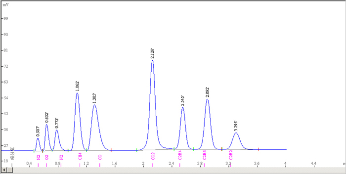 圖四(2) 溶解氣九組份標(biāo)氣色譜圖